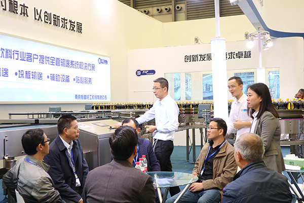 作为国内集输送系统设计、制造、调试安装的高新技术企业,南京恒昌此次展出了新一代六道高速分瓶器和动态缓冲平台等设备,吸引了众多业内知名人士和企业家前来参观。整个恒昌展台宾客络绎不绝,人头攒动,热闹非凡。